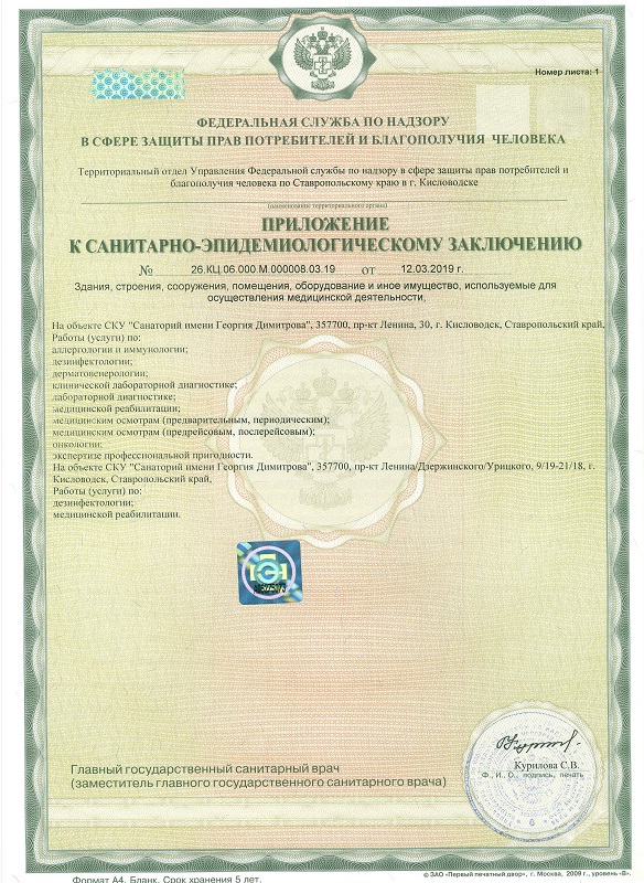 Приложение к санитарно-эпидемиологическое заключению