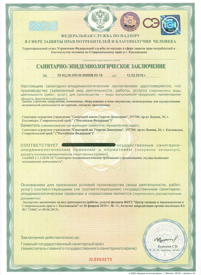 Санитарно-эпидемиологическое заключение